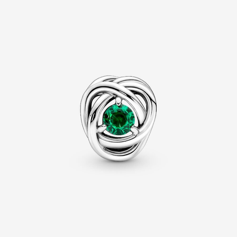 Add a pop of color to your bracelets and pendants with this Royal Green Eternity Circle Charm. This special piece is made in the shape of an infinity braid and is set with a deep green crystal at its center. Symbolizing eternity, add this sparkling charm to your styling to give your everyday jewelry a bright update.