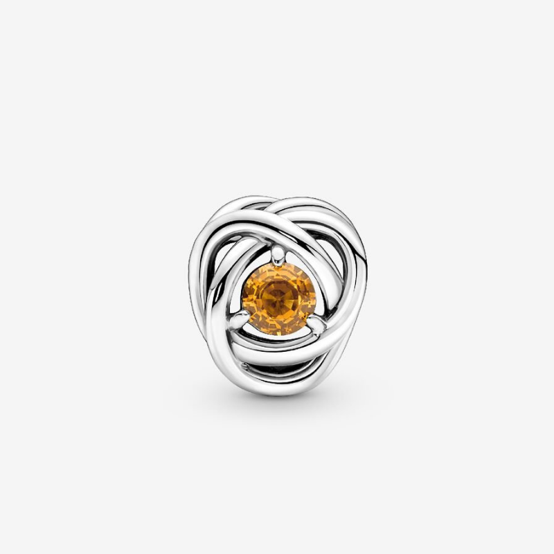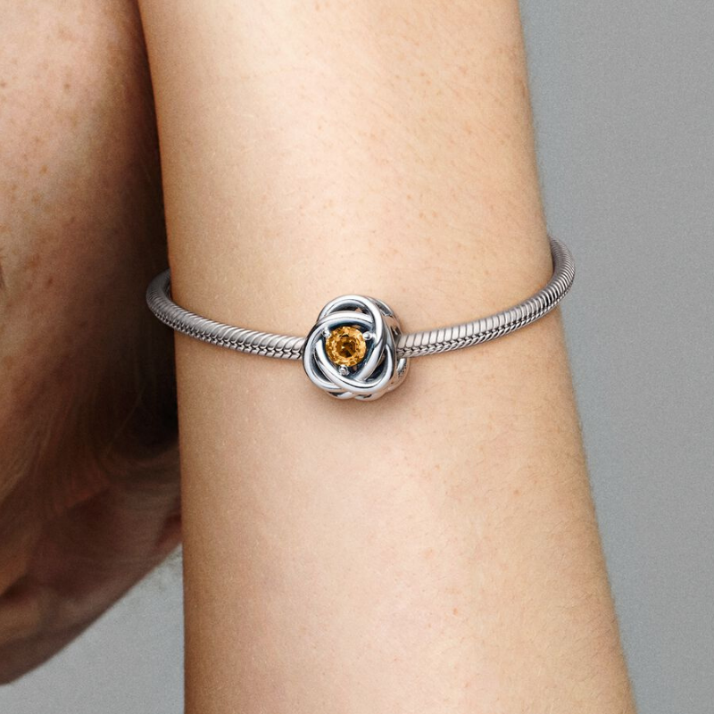 Add a pop of color to your bracelets and pendants with this Honey Eternity Circle Charm. This special piece is made in the shape of an infinity braid and is set with a honey-hued crystal at its center. Symbolizing eternity, add this sparkling charm to your styling to give your everyday jewelry a bright update.