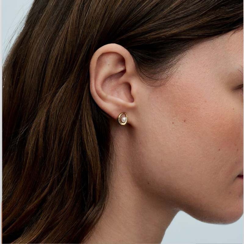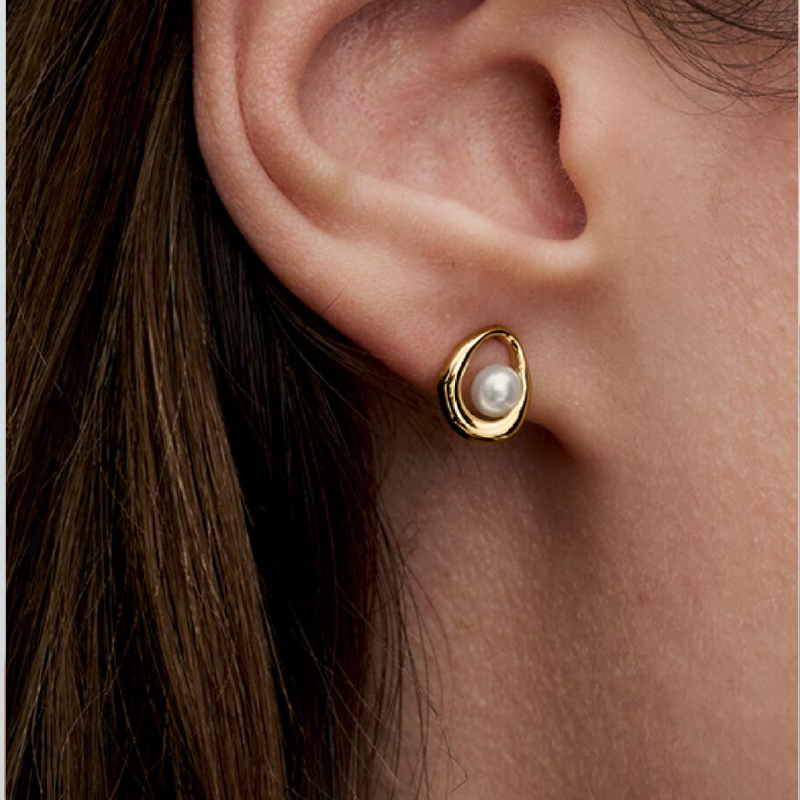 Step into your element with the Organically Shaped Oval & Treated Freshwater Cultured Pearl Stud Earrings. Each earring features one treated freshwater cultured pearl tucked inside an organic-looking 14k gold-plated oval with varying thickness. Each treated freshwater cultured pearl is unique and can vary in size and color; normal wear and tear may occur with this material. Our freshwater cultured pearls are treated with bleaching and luster enhancement.